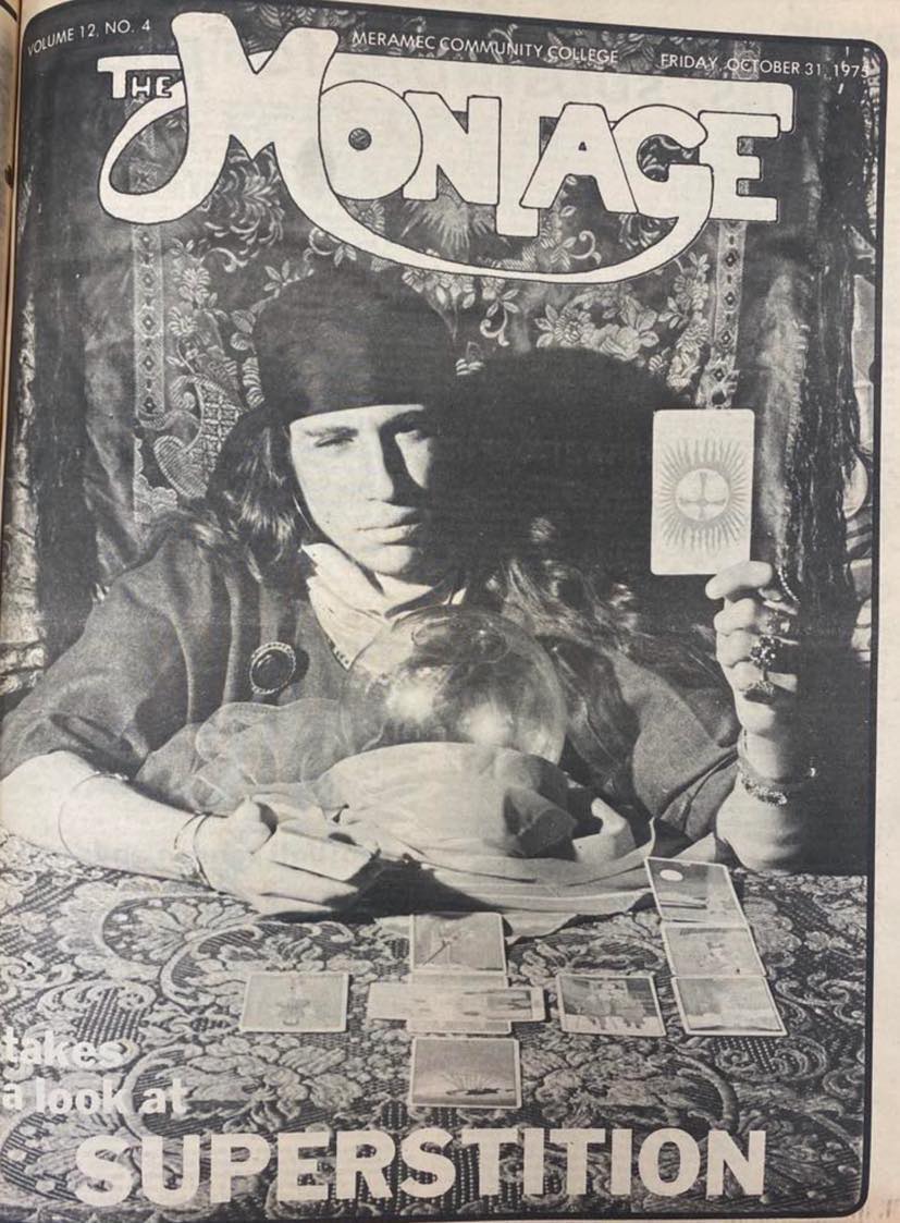 1975 was a different time. STLCC wasn’t even called STLCC for one thing; the college was known as the Junior College District of St. Louis-St. Louis County until the following year. But The Montage was in its eleventh year of print, and the center page spread in the Halloween issue wasn’t afraid to get spooky.