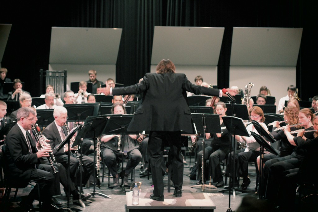 STLCC-Meramec symphonic band and jazz band performed the Cartoon Symphony on April 29 in the Meramec Theater. The symphonic band’s performance consisted of works by Percy Grainger, Valclav Nelhybel and Rimsky-Korsakov. Along with these composers, the symphonic band performed a new piece by Jefferson County R-VII band director Ron Sikes entitled “Illumine” and “The Cartoon Symphony” written and conducted by Meramec Symphonic Band conductor and composer Gary Gackstatter. Gackstatter’s “Cartoon Symphony” featured silent cartoons from the 1920s that were thought up and created by Max Fleischer and his studio, an early innovator in the field of animation. “Fleischer invented most of the stuff that Disney later stole,” Gackstatter said. The cartoon, entitled “Out of the Inkwell,” featured a clown named Coco that caused mischief for his creator. The clown was actually Fleischer’s brother who was filmed in a clown suit and later drawn on frame by frame, according to Gackstatter. The performance was followed up by the Jazz Lab Band directed by Bob Boedges. The band performed a set of big band songs along with solos by band members.