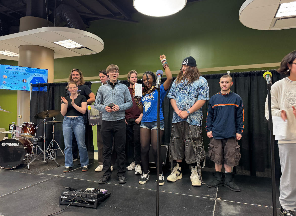 On the afternoon of April 1, Meramec students showed off their talents at “Open Mic Night.” Campus Life sponsored the event featuring students who read their personal poetry, performed in comedy skits, played instruments and sang their favorite songs. Some students took the occasion as an opportunity to showcase their bands.