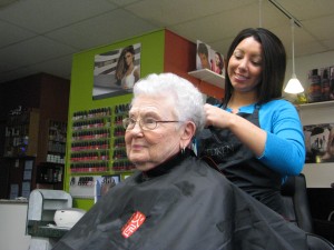 Alicia Reyna cuts and styles a customer’s hair at Reyna’s Hair Salon. She attends class at Meramec while running the salon full time.