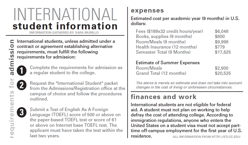 Back-to-School GuideInternational Student Information admin14 years ago01 mins Requirements for admission, expenses and financial aid By: Sara Murillo – Staff Writer – Post navigation Previous: Staying Busy at MeramecNext: Meramec welcomes all ages