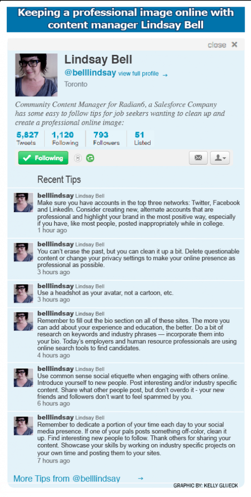 “Job hunting has always been about building relationships with people, reaching out and meeting those who you respect or who you feel might be able to give you advice on the hunt,” Lindsay Bell, Community Content Manager for Radian6, a Salesforce Company, said. “That hasn’t changed.”