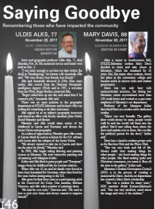 Artist and geography professor Uldis Alks, 77, died Monday, Nov. 28. His memorial service and burial were held on Dec. 3.