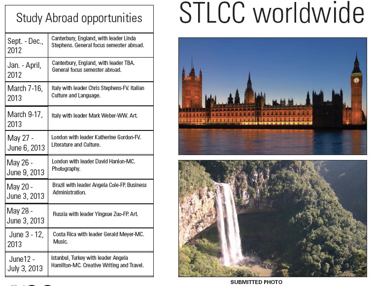 Back-to-School GuideSTLCC Worldwide admin14 years ago14 years ago01 mins Study Abroad Opportunities By: Kavahn Mansouri – Editor-in-Chief – Post navigation Previous: On a mission for ‘honor’Next: Get Your Study On
