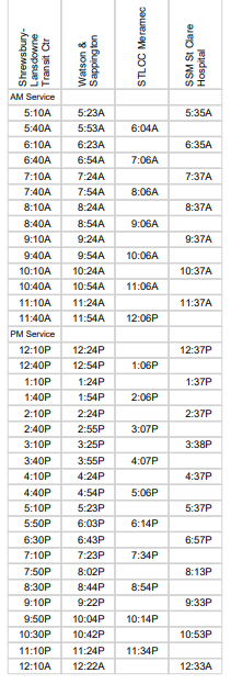 On the Metro website, along with news of other route changes, the organization says that the route changes were about “adjusting weekday/weekend schedules to improve on-time performance and better connections at Shrewsbury-Lansdowne I-44 Transit Center.” They also said that the “last trip of evening will serve St. Clare Hospital instead of St. Louis Community College-Meramec.”