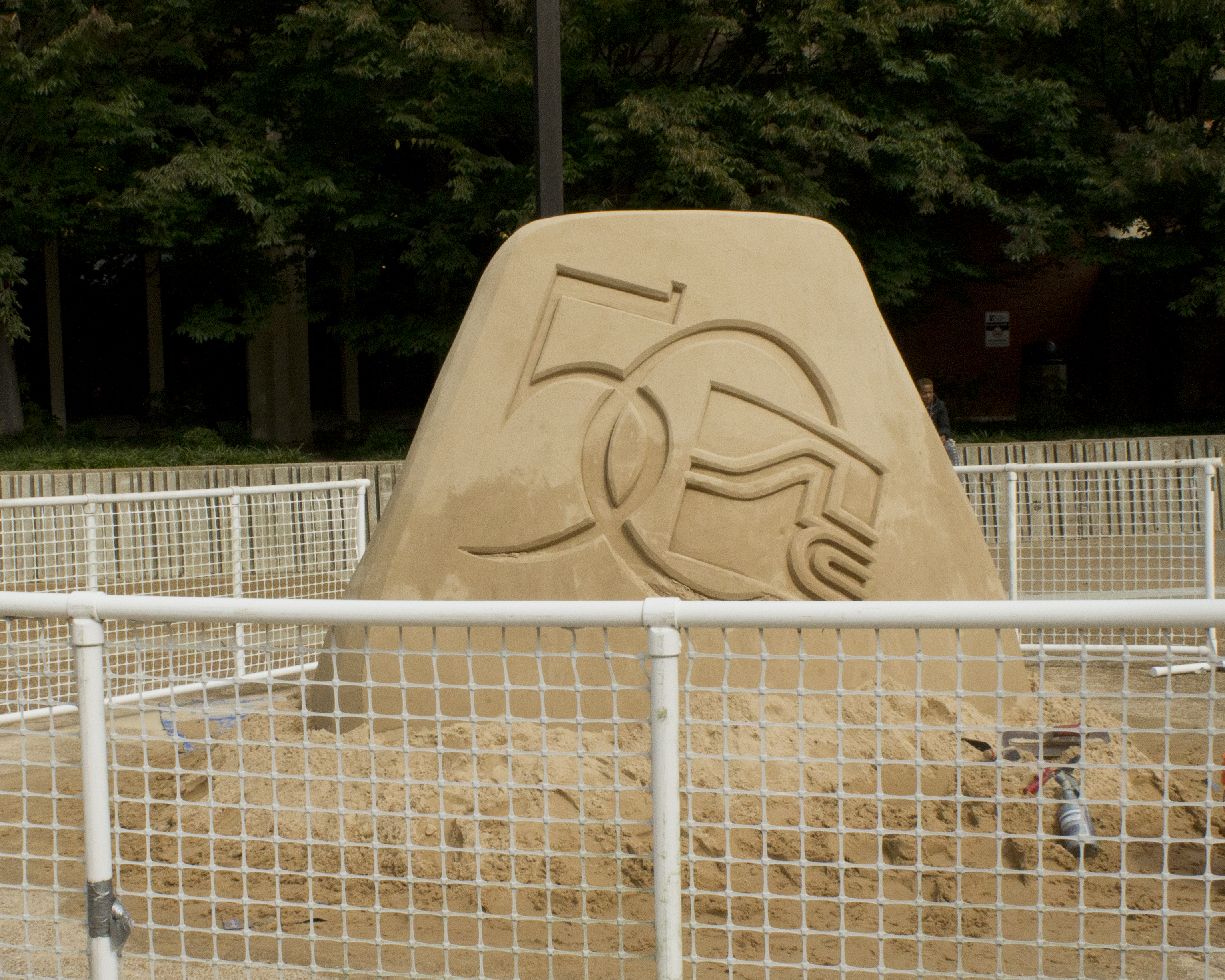 Two weeks ago, international sculptor Dan Belcher was seen outside the Student Center creating another project: this one celebrating the 50th anniversary of STLCC. Belcher was visiting Meramec art students to introduce a different perspective on sand sculpting. Belcher, who has been creating sand sculptures for 20 years, just came back from China after finishing an ”enormous piece,” art professor Joe Tesla said.