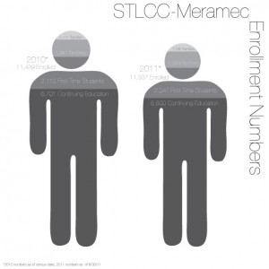 Meramec’s numbers show a 125 first-time student enrollment decrease from the previous year. Full-time student enrollment is also down 164 students while part-time enrollment is up 62 students.