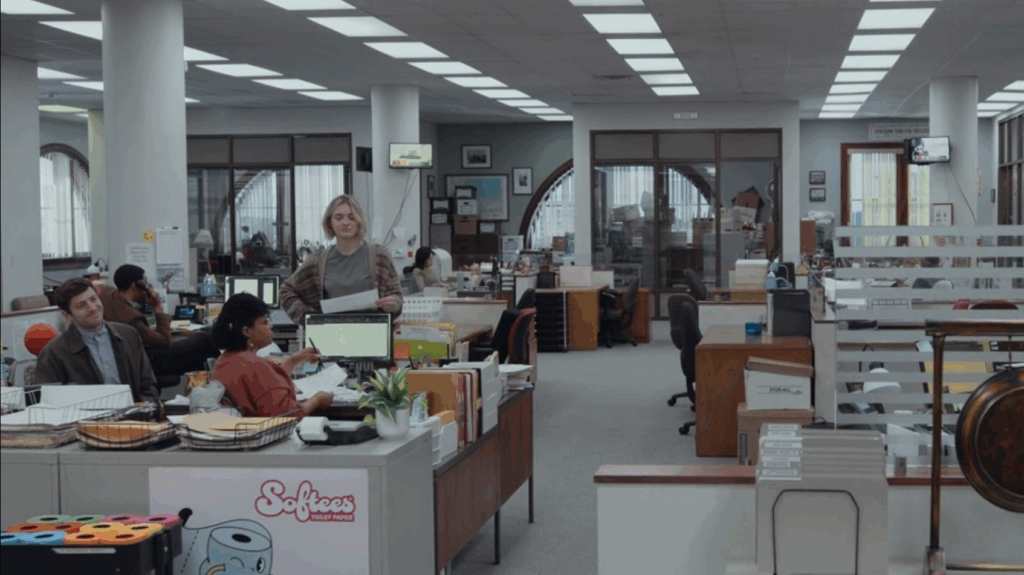 – The opening credits of “The Paper” do take a bit of inspiration from “The Office” which can be heard especially as the title appears on the recycling bin. I do have to say though the older retro photos of the Truth Teller sliced in with new footage are a really nice touch.