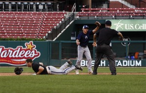 The STLCC Archers defeated the Lewis and Clark Trailblazers, 7-2, on Sunday, Sept. 4, at Busch Stadium just moments after the St. Louis Cardinals lost in extra innings to the Cincinnati Reds.
