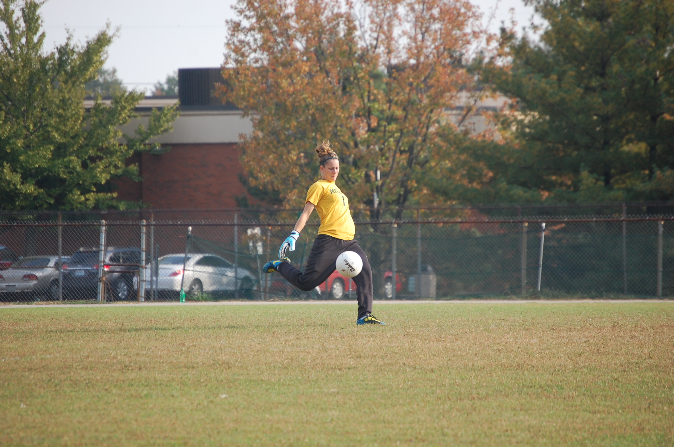 Rachel Choler kick the ball after making a save. | DAVID KLOECKENER