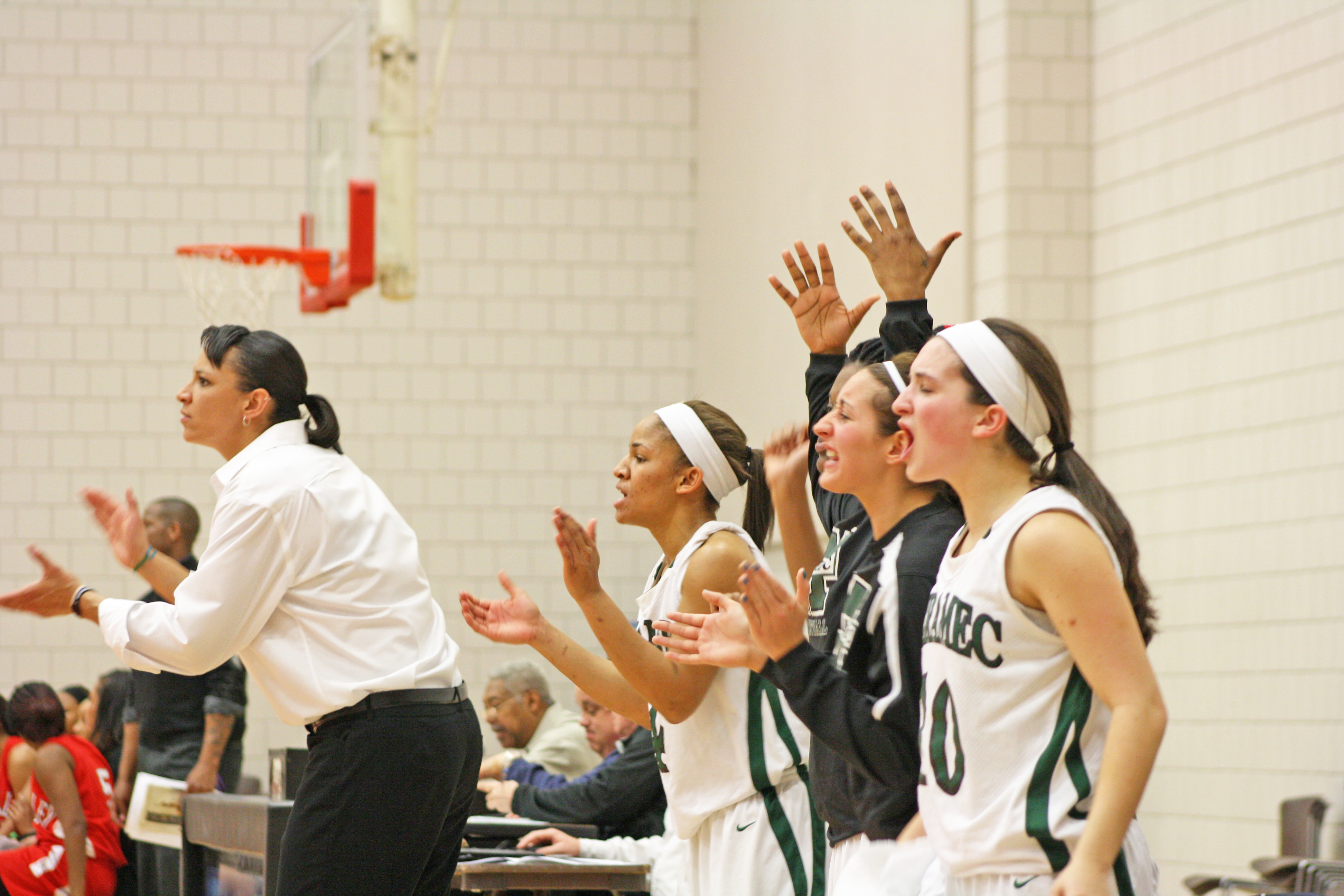 Magic players on the bench cheer on their teammates in the second half of the semi-final game in the Region XVI Tournament. Post navigation Previous: Saving their best for last